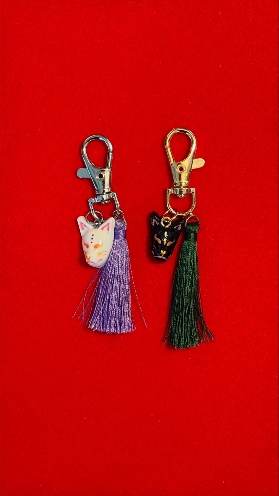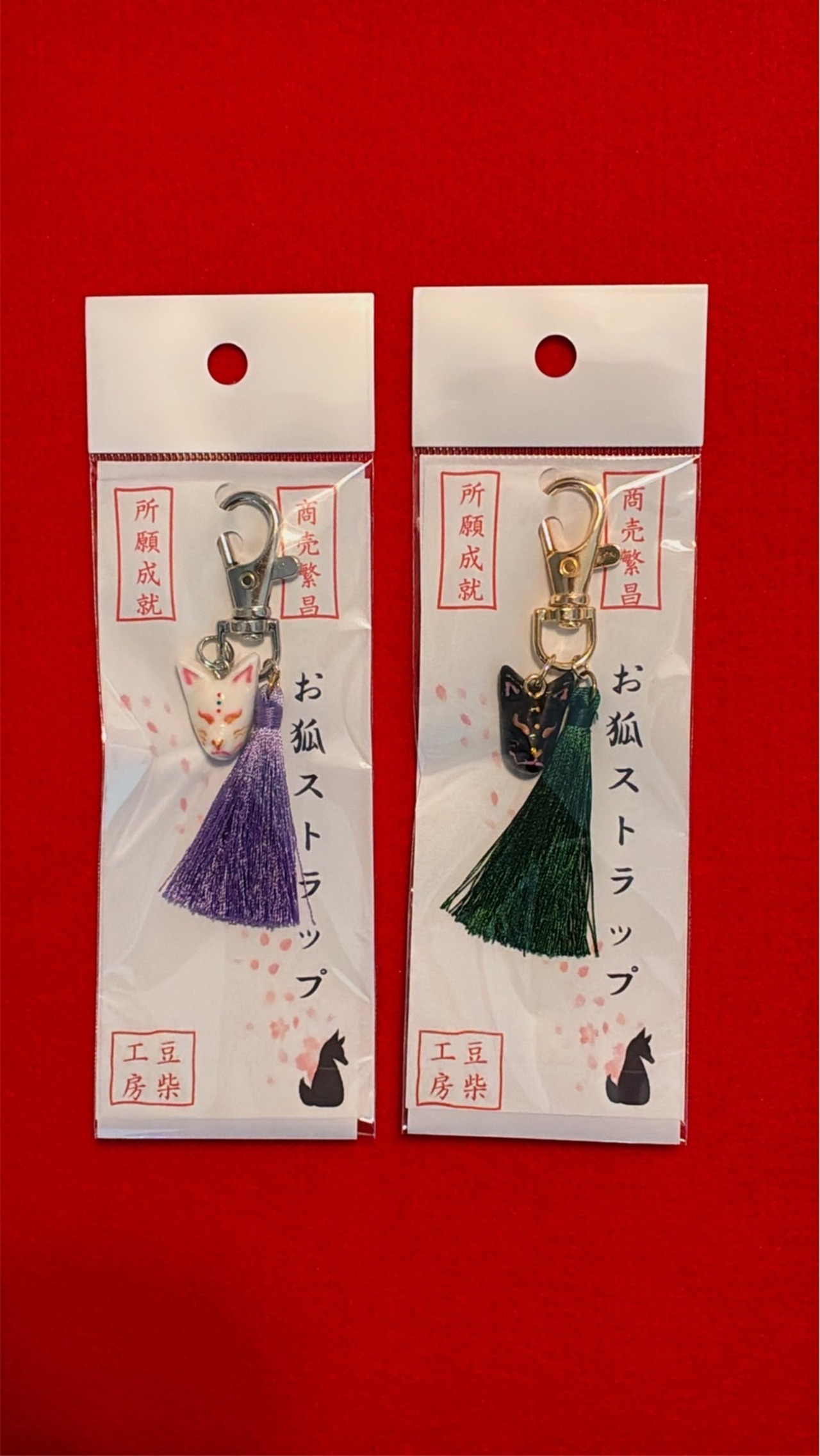 お狐ストラップ(白狐・黒狐)2個セット【送料無料】